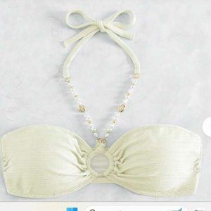 $5 Add on Pearl accent Bandeau Bikini Top With Ring Circle Center NWOT