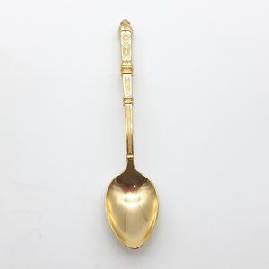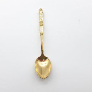 A Washington, DC collectors' spoon in its box with 4 gold colored spoons. The DC spoon shows the US Capitol. The gold spoons are 4" long and the box is 4 1/2".