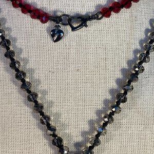 Stunning statement necklace, flashes of charcoal silver and burgundy multifaceted beads are just WOW when the light hits this neclace - wear this and you don't need to add much more to jazz up your outfit. Measures: 22.5" long.