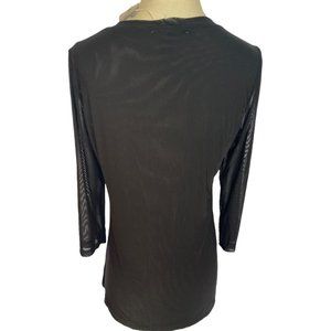 Black mesh long-sleeved top /tee. Single layer mesh see-through sleeves and double layer body.