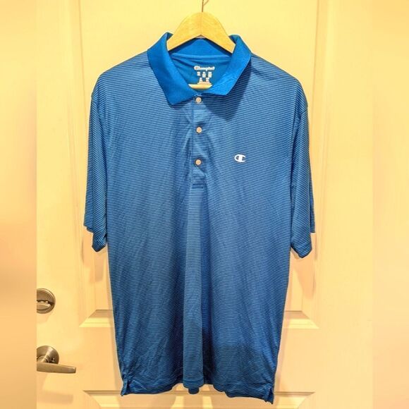 $5 Item! EUC Champion 2XL Men's Striped Blue and White Golf Polo