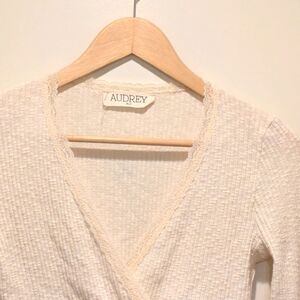 $5 Item! Audrey 3+1 S Waffle Knit Cream Crop Top w Lace Collar- SEE SIZE NOTES