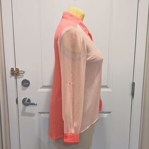 $5 Item! Maurices L Two-Tone Coral Pink Sheer Button Down Button Sleeve Blouse
