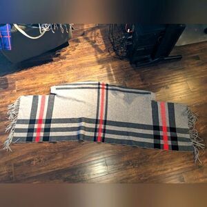 $5 Item! Wide Plaid Thick Wool Fringe Scarf with Arm Holes