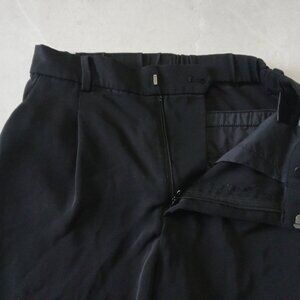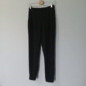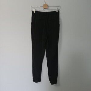 Uniqlo black tapered dress pants. Side pockets. Elastic pant hems. Silky material. Gently loved and in good condition.