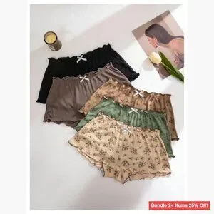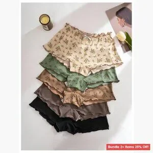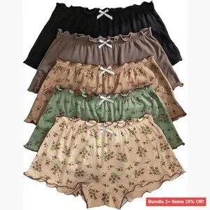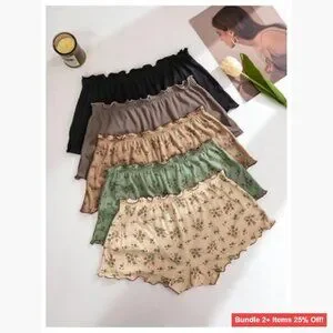 [ORIGINAL_TITLE: 5 Pack Mid Rise Ribbed Knit Panties with Ruffle Trim Floral Print]