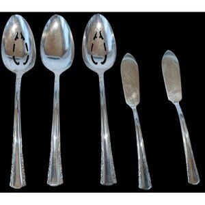 5 Pc Vintage Holmes & Edwards 1951 MAY QUEEN Silverplate Spoons & Butter Knives