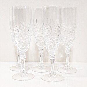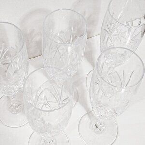 5 Pcs Cut Crystal Champagne Flutes / Elegant Drinkware Glassware / Wedding Party
