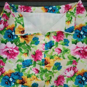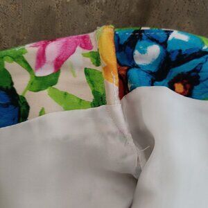 🌺Handcrafted skirt, vibrant colors, floral print, fully lined, back slits, waist 16", hips 20", lenght 22.5". Cotton & Poliester, no stretchy.