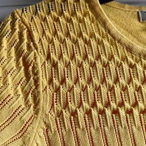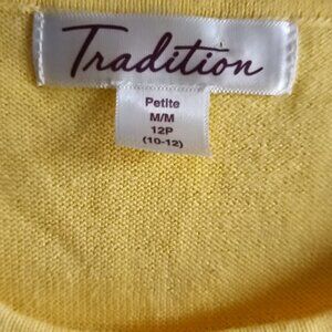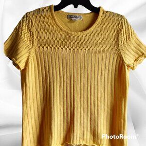 🌺Tradition vintage knit yellow cotton blend top, size Medium 12P, pit to pit 20" stretchy, lenght 22", good vintage condition.