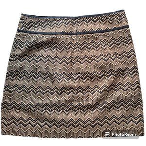 Cute LOFT Mini Skirt Pencil Lined Black Brown Chevron Workwear Business Casual.