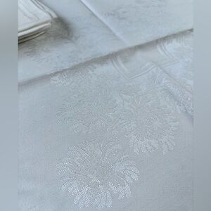 5 Soft White Damask Vintage Napkins. 16.5”sq.1950c. Mid Century Modern Tableware
