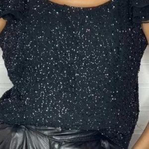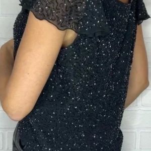 5. Vintage 90s black chiffon flutter sleeve beaded top XL