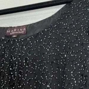 is a lightweight black chiffon (many of her tops were silk) with beads all over body