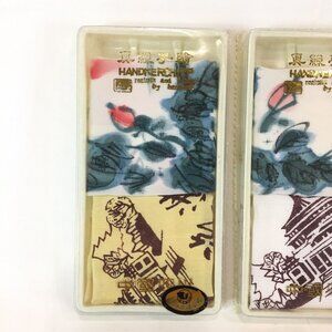 5 Vintage Silk & Embroidered Handkerchief Hanky New In Package Travel Souvenir