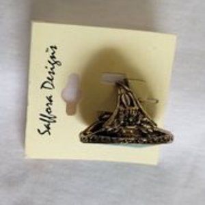 Vintage antique blacken gold tone finished flowers on either side of the band.