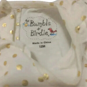 (5 for $25) Bumble and Birdie dress, white w embroidery & gold polka dots NWOT