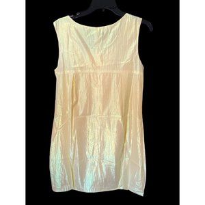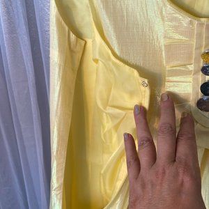 Simply the most adorbs little yellow dress accented with fancy buttons, a gorgeous fabric that shimmers, slight balloon hem and side zip for easy on and off. Perfect dress for any occasion! This would also make a perfect maternity dress :) New without tags, one button has some thinning of threads but does not at all detract from overall beauty! Measures when laid flat: