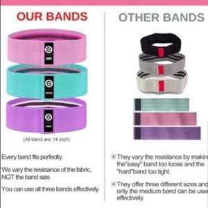 Unlike latex/rubber resistance bands, our soft fabric bands will NOT slide or roll up during workouts! Our bands are made with superior fabric with a very high breaking resistance, so you never have to worry about ripped/broken bands.