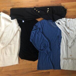 blue tunic sweater vneck size s/m, but roomy/relaxed fit