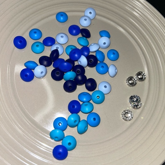 A collection of assorted blue and silver beads. Perfect for crafting and jewelry making.