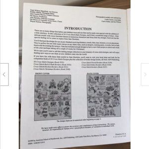 50 Cross Stitch Baby Designs pattern book #3556 by Sam Hawkins (American School of Needlework, 1990). Each design is pictured on the front & back cover in full color, with black & white graphs inside. Many cute designs to choose from. 17 pages, 8 1/2" x 11". Very good pre-owned condition, some creasing to cover.