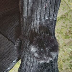 add to bundle and send offer 50% off Cute black hat and fingerless glove set with pompom embellishments , NEW.