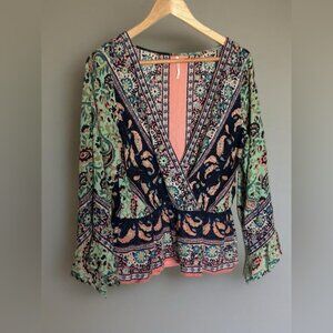 🍄 50% OFF - Free People Bohemian Floral Print V-Neck Blouse