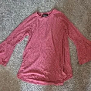 It's very soft. The material is 67% polyester, 27% Rayon, and 6% Spandex.