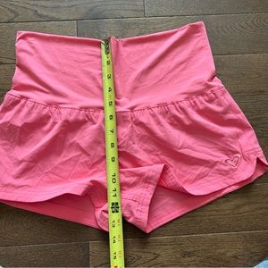 - Bright bubblegum pink high rise shorts