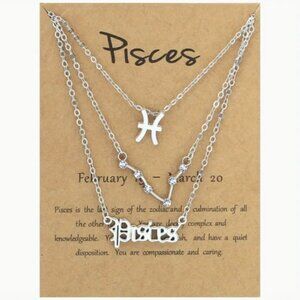 ๐50% OFF/3+..โ 3 pc zodiac Pisces link chain layered necklace set (Silver tone)