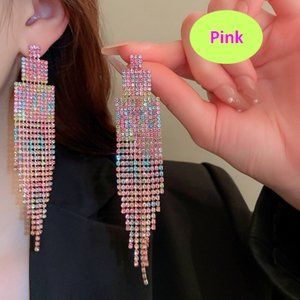 ~ In this listing is a grouping of pretty, elegant earrings featuring long, colorful small rhinestone tassel that sparkle/shimmer in the light and dangle as you move ̣̣(very light despite the long tassels).