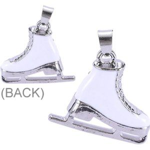Pretty, 3D white enamel ice skate pendant necklace. Silver tone.