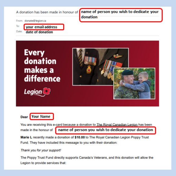 For further information about The Royal Canadian Legion and the donation process, please refer to the links below: