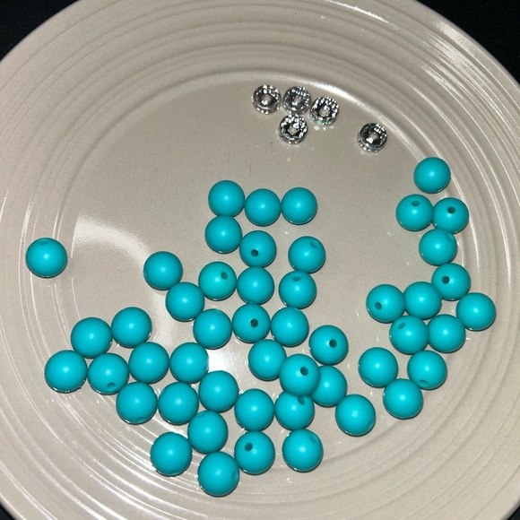 Set of turquoise and silver beads. Perfect for crafting and jewelry making.