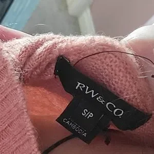 Dusty pink color, like new, extremely soft and comfortable. Amazing quality. Cable knit look on the front of the sweater, turtleneck style.
