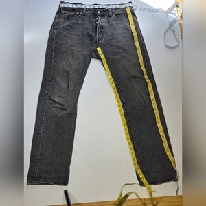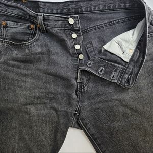 501 Levis, faded black and well worn in. in good condition. no damage