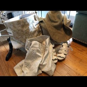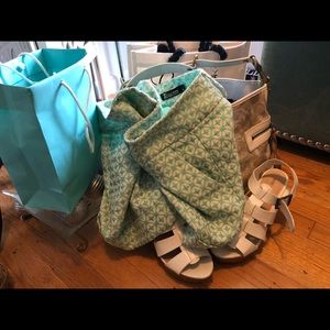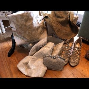 New Leather coach with Gold Fabric Coach Purse Remember, if YOU damage this purse, and if it meets the term agreed to by Coach, Coach Will Repair it Or Give You A Store credit. 👜