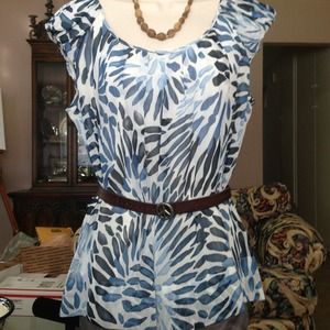 Blues on white background. Low back with bow detail. Belt not included. Will fit medium as well. Fully lined!