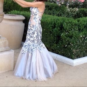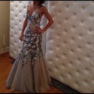 Silver size 0. Amazing . Halter strap lengthened a bit & pads sown in. Shines better than diamonds. Picture doesn't do it justice. The most beautiful dress I have ever seen in person and I was blessed to be wearing it.