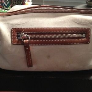 Reduced - Coach small sporty bag - has stains, can be cleaned. Inside liner is perfect, no tears and is clean inside. Sold as is.... Priced to sell.