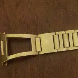 The band has slight scratches and scuffs commensurate with vintage wear, but they're hard to see unless you look really closely. There is also a very small dark spot on the center release link, which you can see in the first picture.