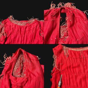 Great vintage condition, a few strands of fringe are damaged, some minor stains on interior, faint discoloration on interior of arm holes, inside of collar's hem is loose