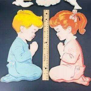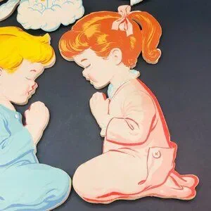 50s Dolly Toy Co Praying Kids Pressed Cardboard Wall Hangings Set Vintage Kitsch