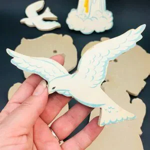 50s Dolly Toy Co Praying Kids Pressed Cardboard Wall Hangings Set, Vintage Nursery Decor, Midcentury Kitsch Boy Girl Angel Birds Silhouettes