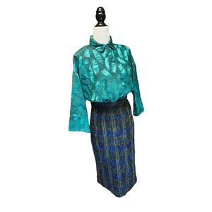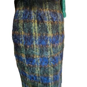50s Mohair Wool Plaid Blue Green Pencil Midi Skirt Vintage 60s MOD
