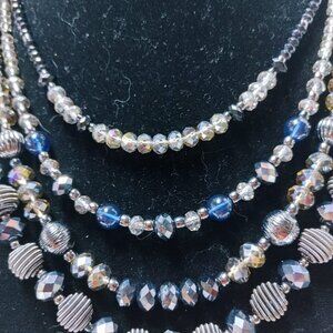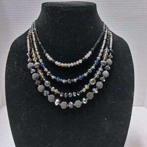 5/$100 -2 pcs Avon NRO MultiStrand Necklace Blue Black Beads Silver Tone 17"