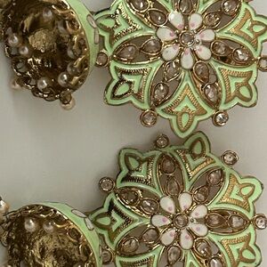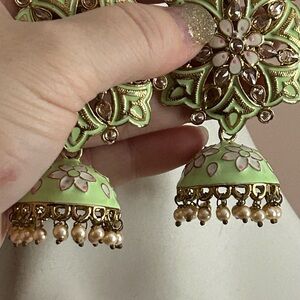 5/$100 Green enamel Kundan jhumkas earrings 70mm