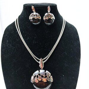 5/$100 Silver Tone Necklace 18” Pendant Black Ball Chain and Earrings
