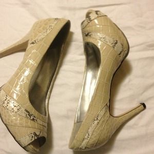 Cream colored w/ white & black snake skin design.. Beautiful together!! Shoes are a size 7.5